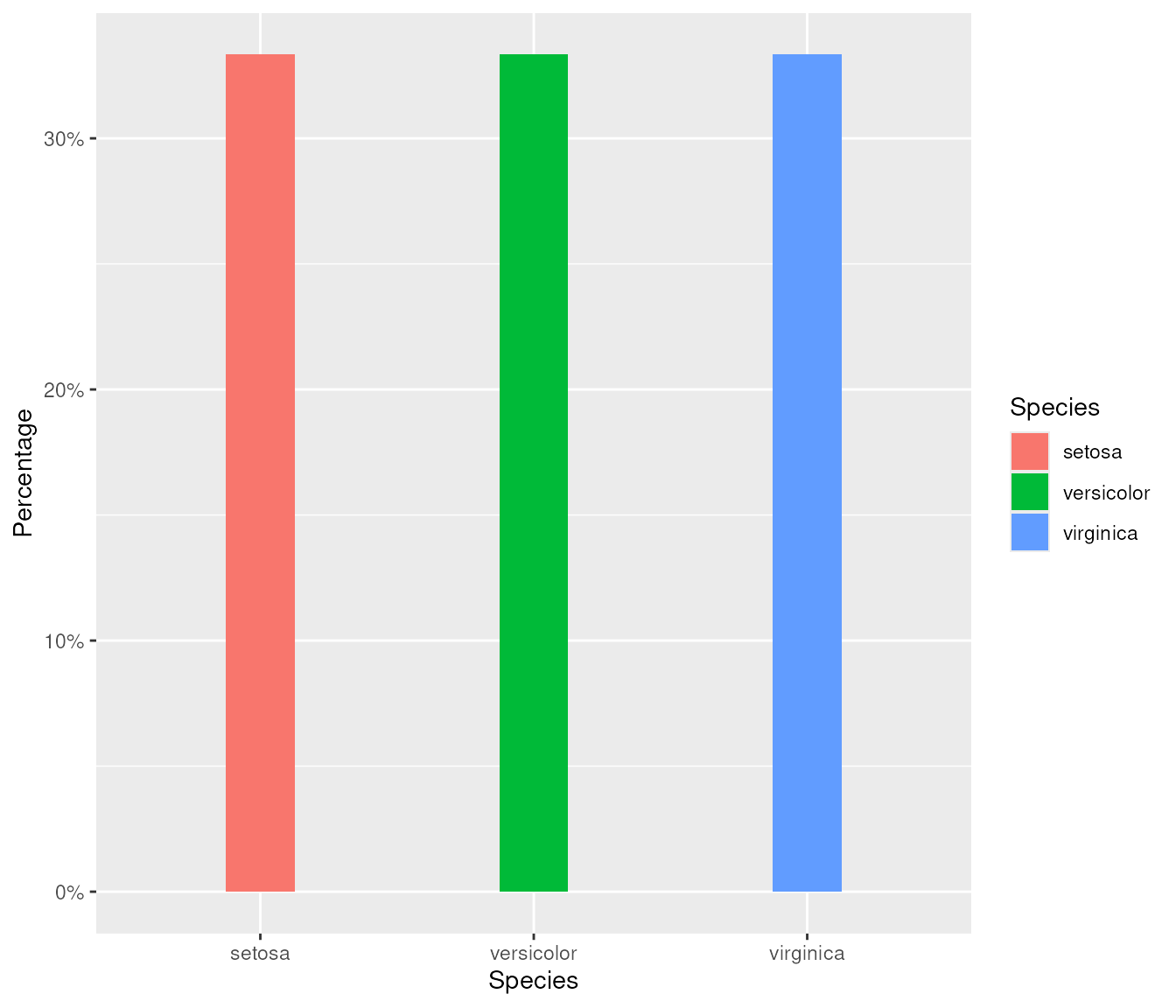 geom_col(aes(y = prop, fill = Species), width = 0.25)Use as_percent for formatting percentage axes.